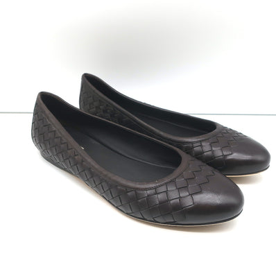 Bottega Veneta Intrecciato Leather Ballet Flats Dark Brown Size 38