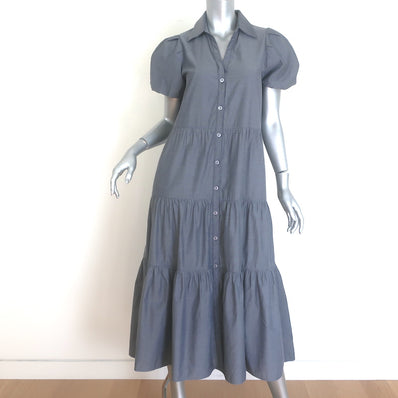 Brochu Walker The Havana Puff Sleeve Tiered Midi Dress Gray Chambray S...