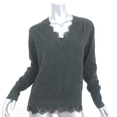 Brochu Walker Lace-Trim Sweater Marcella Charcoal Wool-Cashmere Size S...