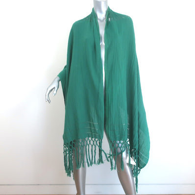 Caravana Fringed Shawl Scarf Green Cotton Gauze NEW