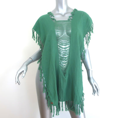 Caravana Fringed Cover-Up Tunic Green Gauze One Size