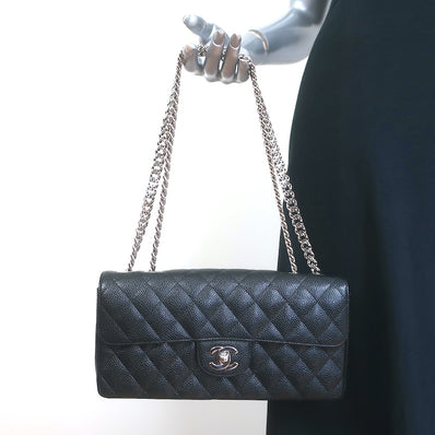 Chanel 00V Bijoux Chain East West Flap Bag Black Quilted Caviar Leather