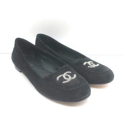 Chanel 17P Chain CC Loafers Black Suede Size 42 Slip-On Flats