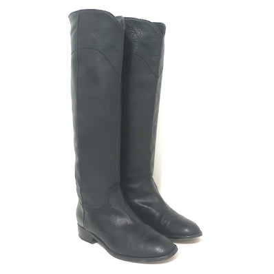 Chanel 14A CC Riding Boots Black Grained Leather Size 39