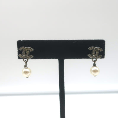 Chanel 05A Crystal CC Pearl Drop Earrings