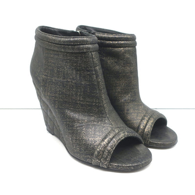 Chanel 16S Quilted Wedge Booties Black/Gold Size 36 Open Toe Ankle Boots