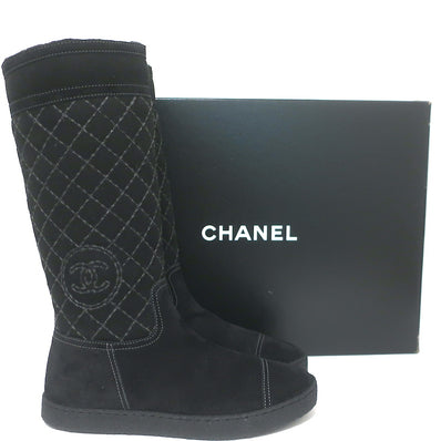 Chanel 12A CC Quilted Shearling Boots Black Suede Size 37.5 NEW