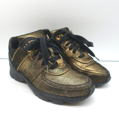 Chanel 16K Low Top Sneakers Gold Metallic Suede Size 35