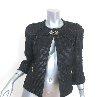 Chanel 08A Checked Metallic Tweed Jacket Black/Cream/Gold Size 36