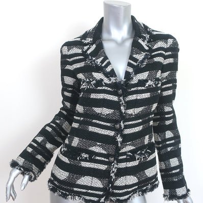 Chanel 08P Striped Fringed Tweed Jacket Black/Silver Cotton-Blend Size 38