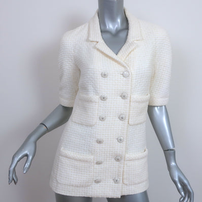 Chanel 14C Woven Tweed Short Sleeve Double Breasted Jacket Cream Size 38
