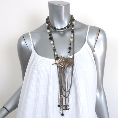 Chanel 06P Runway CC Feather Necklace Draped Chains Pearls & Beads