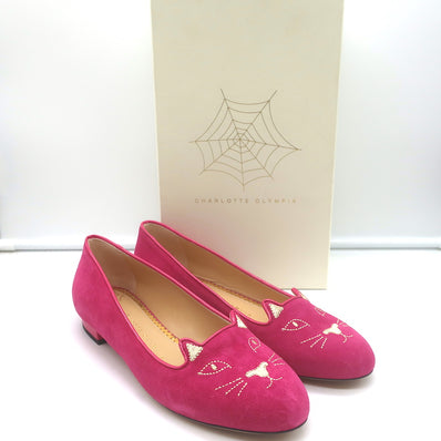 Charlotte Olympia Kitty Ballet Flats Fuchsia Suede Size 38 NEW