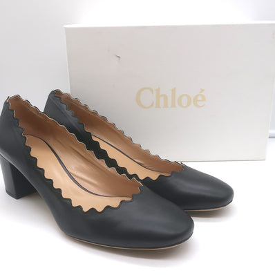 Chloe Lauren Scalloped Leather Pumps Black Size 40