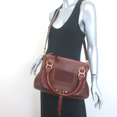 Chloe Marcie Medium Perforated Leather Shoulder Bag Brown Leather Cros...