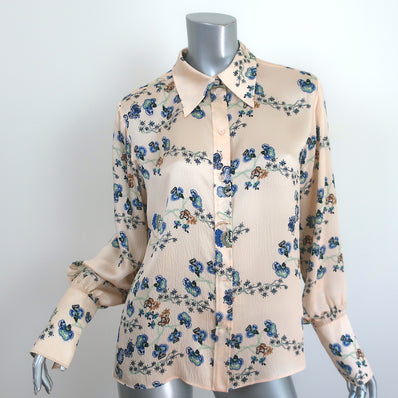 Chloe Blouse Beige Floral Print Hammered Satin Size 44 Long Sleeve But...