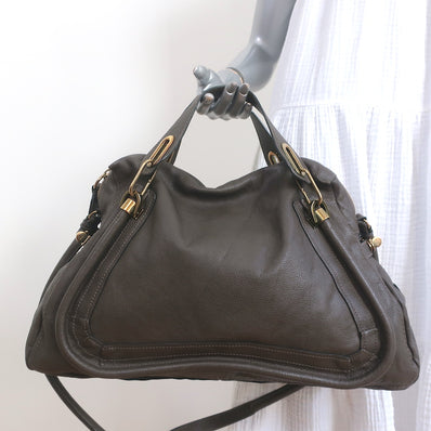 Chloe Large Paraty Shoulder Bag Dark Brown Leather