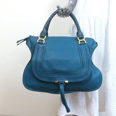 Chloe Marcie Large Shoulder Bag Laguna Blue Leather