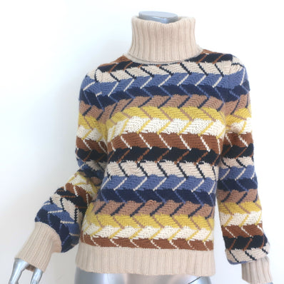Chloe Herringbone Knit Turtleneck Sweater Cream/Multi Wool-Cashmere Si...