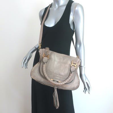 Chloe Marcie Medium Shoulder Bag Taupe Studded Suede Crossbody