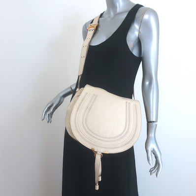 Chloe Marcie Medium Saddle Bag Cream Grained Leather Crossbody