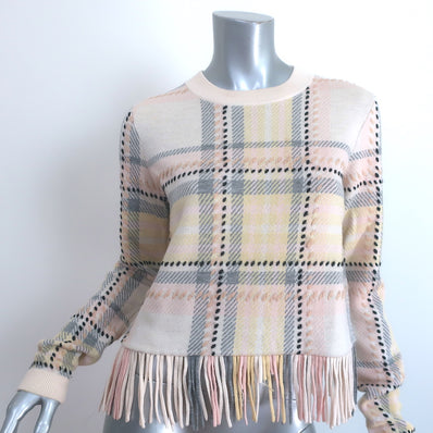 Chloe Fringed Plaid Sweater Cream Wool-Cashmere Size Small