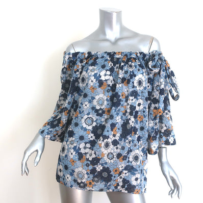 Chloe Off the Shoulder Blouse Blue Floral Print Cotton Size 36 Short S...