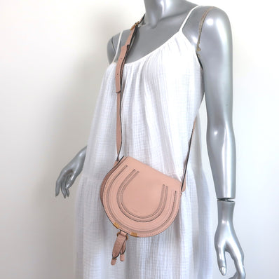Chloe Marcie Mini Crossbody Saddle Bag Pale Pink Grained Leather