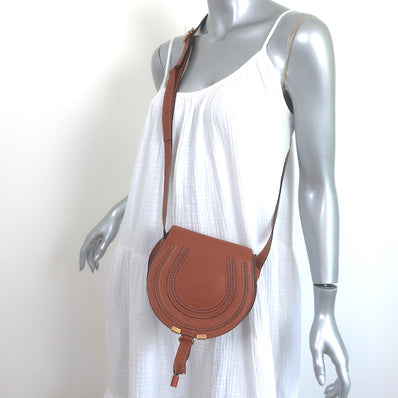 Chloe Marcie Mini Crossbody Saddle Bag Brown Grained Leather