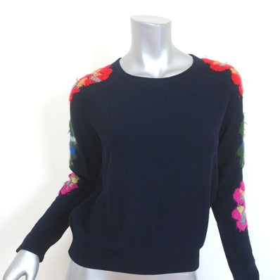 Chloe Floral-Embroidered Sweater Navy Size Extra Small Crewneck Pullover