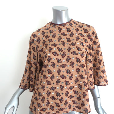 Chloe Blouse Beige Paisley Print Silk Crepe Size 36 Flutter Sleeve Top