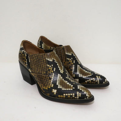 Chloe Ankle Boots Rylee Mustard Snake-Print Leather Size 38 Pointed To...