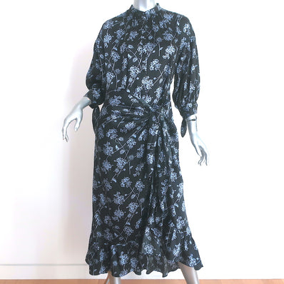 Cinq a Sept Halette Tie-Waist Ruffle Dress Charcoal Floral Print Size ...