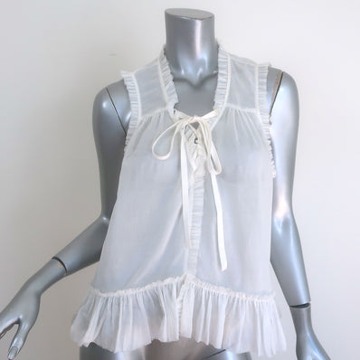 Cinq a Sept Tie-Neck Sleeveless Ruffle Top White Cotton Size Medium