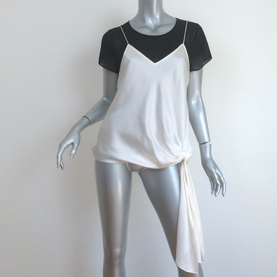 Cinq a Sept Layered Short Sleeve Top Black Chiffon & Ivory Silk Size S...