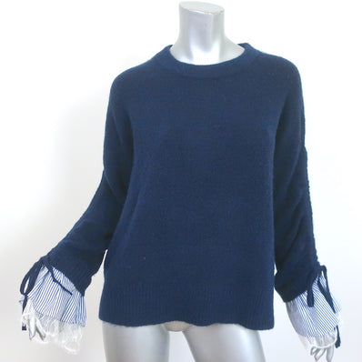Cinq a Sept Atlas Lace-Trim Bell Sleeve Sweater Navy Wool-Blend Size S...