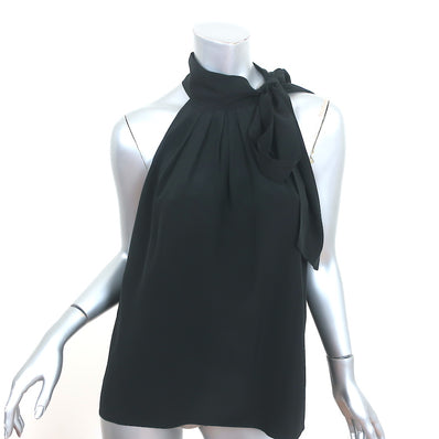 Claudie Pierlot Tie-Neck Top Black Silk Size 36 Sleeveless Blouse