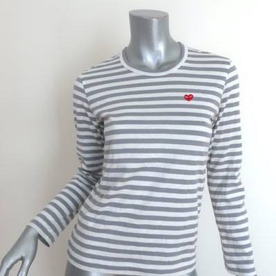 PLAY Comme des Garcons Small Heart Long Sleeve Tee Gray/White Stripe S...