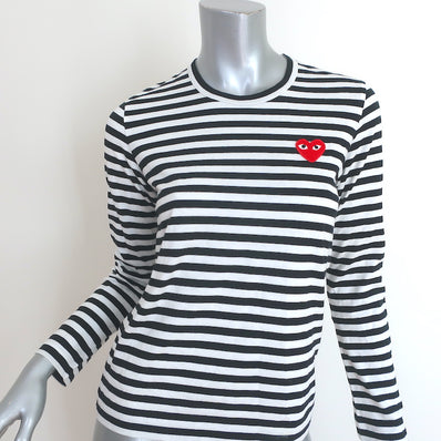 PLAY Comme des Garcons Heart Patch Long Sleeve Tee Black/White Stripe ...