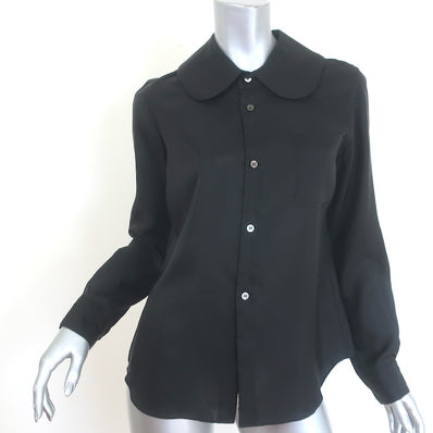 Comme des Garcons Peter Pan Collar Shirt Black Cupro Size Small Long S...