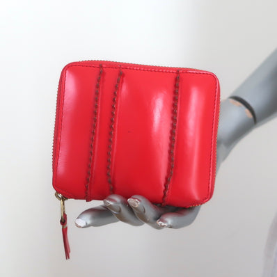 Comme des Garcons Raised Spike Zip Around Wallet Red Glossy Leather
