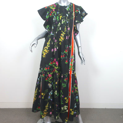Cynthia Rowley Nairobi Kaftan Maxi Dress Black Botanical Print Cotton ...