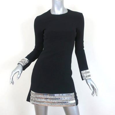 David Koma Mini Dress Black Crystal-Embellished Crepe Size 0 Long Sleeve