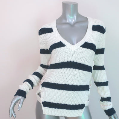 Derek Lam 10 Crosby Pat Lace-Up Side Sweater Cream/Navy Striped Size S...