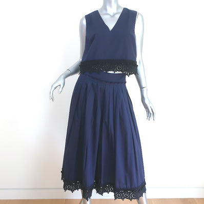Derek Lam 10 Crosby Matching Top & Midi Skirt Set Navy Lace-Trim Cotto...