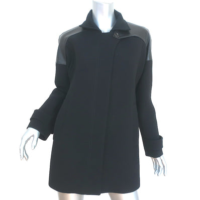 Derek Lam Coat Black Leather-Paneled Wool Size US 2