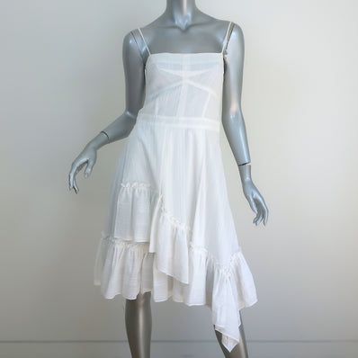 Derek Lam 10 Crosby Asymmetric Ruffle Hem Dress White Cotton Size 4 NEW