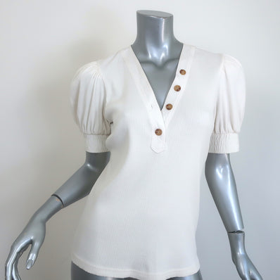Derek Lam 10 Crosby Heather Puff Sleeve Top Cream Ribbed Knit Size Small