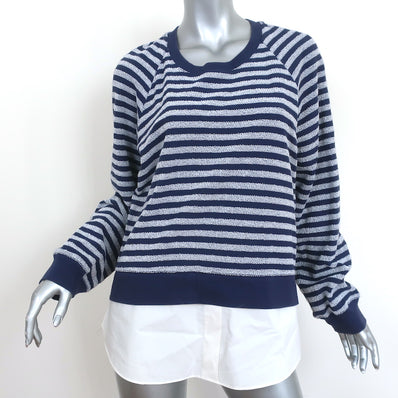 Derek Lam Denim Layered-Effect Sweatshirt Navy Striped Terry Size Large