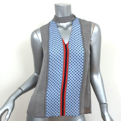 Derek Lam 10 Crosby Keyhole Top Blue Printed Silk Size 0 Sleeveless Bl...
